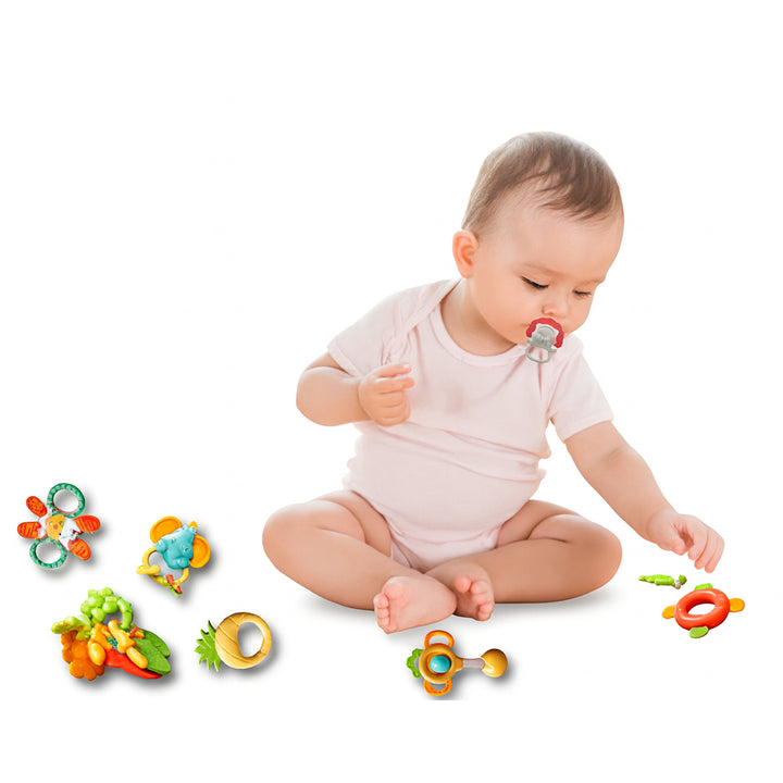 2-in-1 Design: A soothing teether and an engaging rattle in one toy.