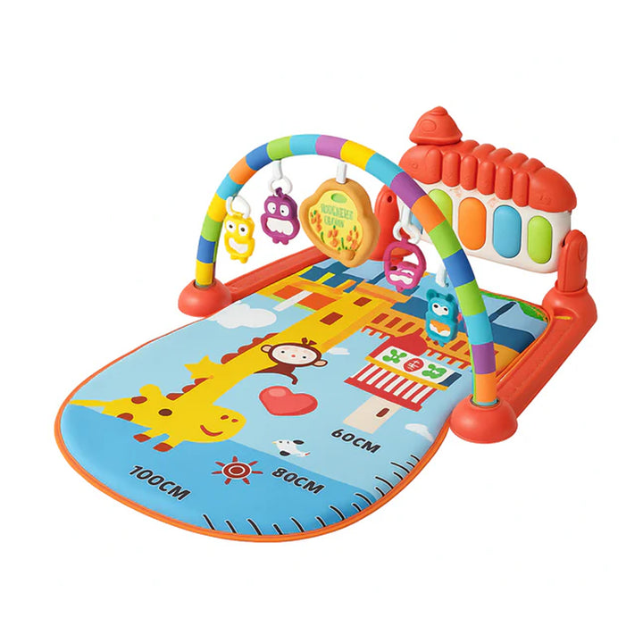 Multi-Sensory Mat: Features a plush blanket and hanging toys that stimulate fine motor skills (grasping), gross motor skills (kicking), and visual tracking.
