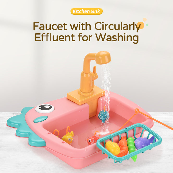 2-in-1 Play: Often includes accessories for both washing dishes and a fishing game (as seen in images).