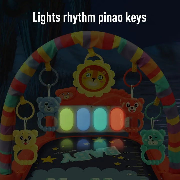 Multi-Sensory Playmat: Features a plush, comfortable mat with vibrant colors, friendly characters, and engaging textures to stimulate visual and tactile senses.