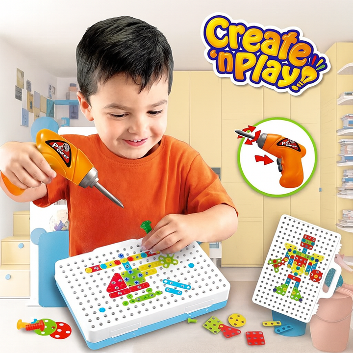 Real Power, Kid-Safe Fun: The functional electric drill (battery-operated) allows children to screw and unscrew bolts, providing an authentic and satisfying building experience.