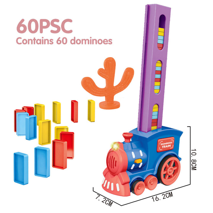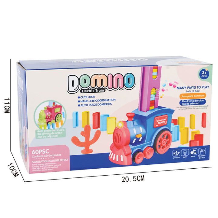 Bring a unique blend of fun and learning to playtime with our Electric Domino Train Set! This captivating toy automatically lays a perfect line of dominoes as it chugs along, ready for your child to delight in knocking them down. Each set includes a colorful, battery-operated train engine and the mechanism to effortlessly place the dominoes in sequence, encouraging hand-eye coordination, spatial reasoning, and patience. Perfect for young engineers and builders, this toy offers a continuous loop of excitement—watch the train create the track, and then enjoy the satisfying chain reaction of the fall, making it a fantastic gift for any occasion.