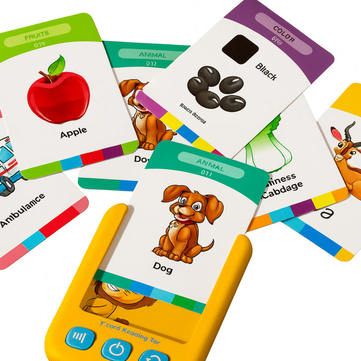 Interactive Audio: Pronounces English words and often plays relevant sounds (like animal noises) when cards are inserted.