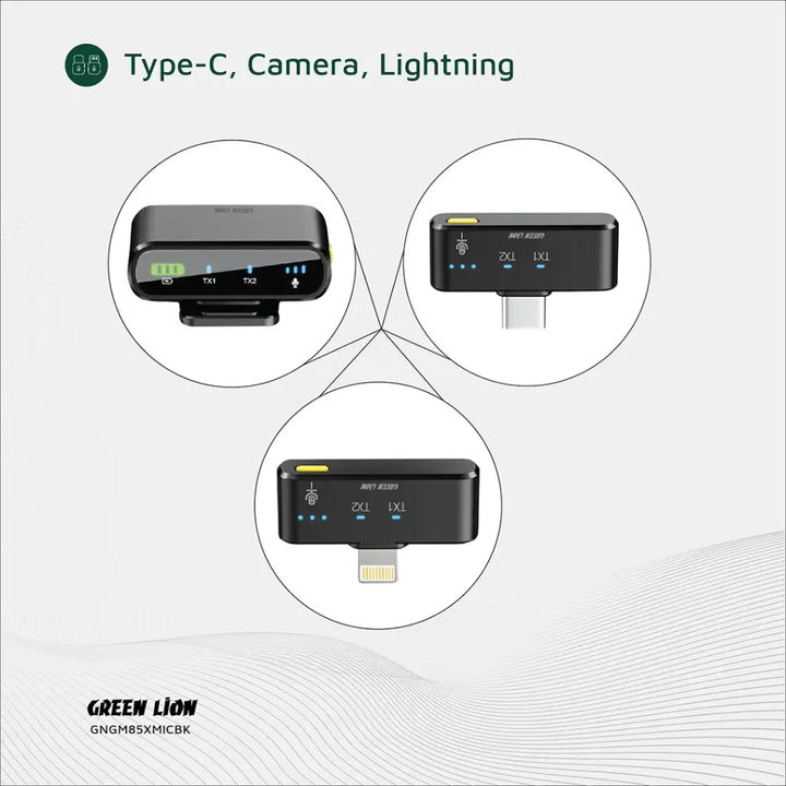 Green Lion GM-85X 3 in 1 Wireless Microphone is designed to deliver great-sounding performance in small dimensions. Made of sturdy ABS construction, this ultra-mini designed condenser mic offers clear and sharp sound with -35dB sensitivity and high-frequency response of 20Hz-20kHz. This microphone delivers high-quality sound recording with a high signal-to-noise ratio of ≥ 65. With Type-C, Lightning, and Camera receivers, the GM-85X is universally compatible with any device. With an 80mAh mic battery and 110mAh receiver battery, you can work for as long as 6 hours, and with the 1000mAh case battery, the total comes to a whopping 28 hours. At a transmission distance of 20-40m and ≤ 20 ms latency, you can be assured of reliable, lag-free performance. Other features include an omnidirectional 360° microphone, a magnetic anti-lost clip, and a leather case for easy carrying. 3-stage volume control and an LED light also add convenience and accuracy to your listening experience.