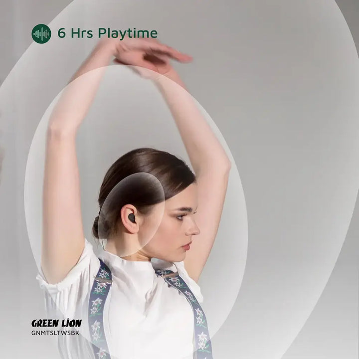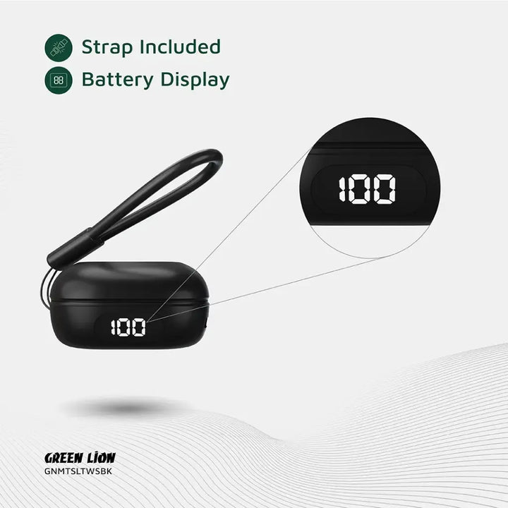 The Green Lion Mittersill True Wireless Earbuds give you a perfect sound thanks to 8mm speakers, a frequency range between 20Hz-20kHz, and 105±3 dB sensitivity. It can easily connect to any device within a 10-meter transmission range by means of Bluetooth V5.4, whereas sweat and rain cannot harm these earbuds due to an IPX5 waterproof rating, making it a prime candidate for workouts. Onboard, the earbuds have a 30mAh battery, whereas the charging case holds 200mAh, giving it around 6 hours of playtime. Dual mic ENC technology allows for superior calls and good background noise cancellation. Fast charging is assured via Type-C charging with a battery display, allowing you to keep track of your remaining power level. For further ease and comfort, the earbuds come with a strap that makes carrying a joy and are designed to sit perfectly in your ears for long listening sessions.