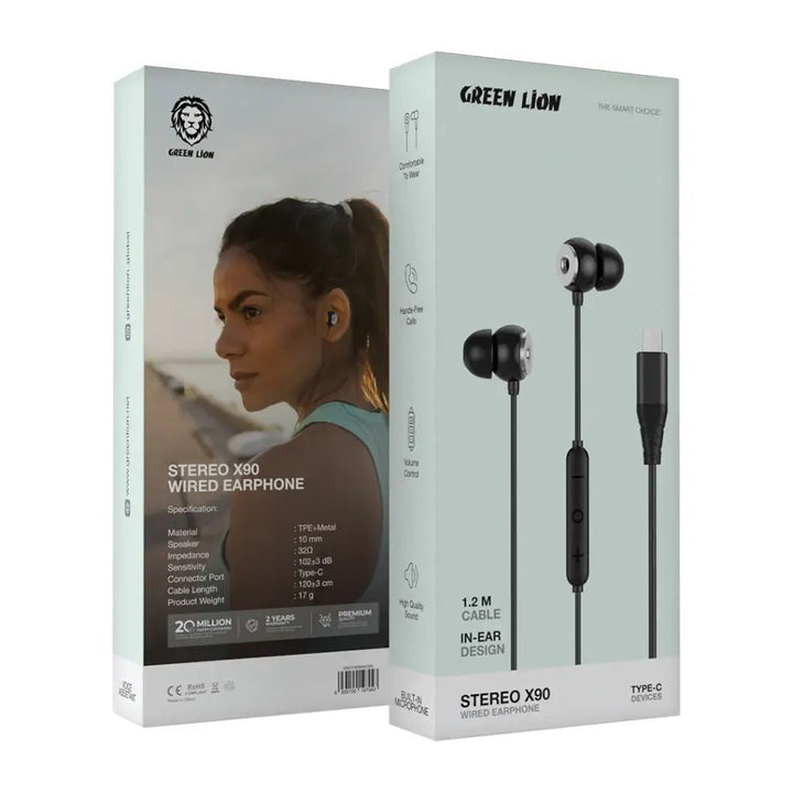 The Green Lion Stereo X90 Type-C Wired Earphone is designed with superior audio, comfort, and fitting quality. This product is made of TPE and metal for durability, this earphone has a 10mm speaker, 32Ω impedance, and 102± dB sensitivity to ensure clear sound and deep bass. The cable measures 120 cm for convenience and flexibility during daily use. Equipped with hands-free calling, volume adjustment, and supporting voice assistants, it provides great convenience for work and entertainment. The ergonomic design of its in-ear offers comfort, even after prolonged usage, making it ideal for music, gaming, and calls. Even at home, work, or even on the go, this X90 earphone comes with superior sound quality and dependable performance.