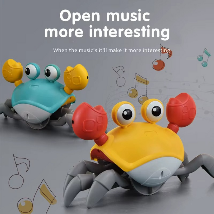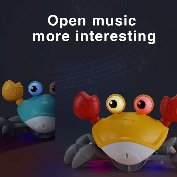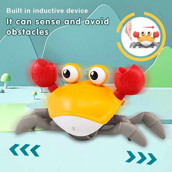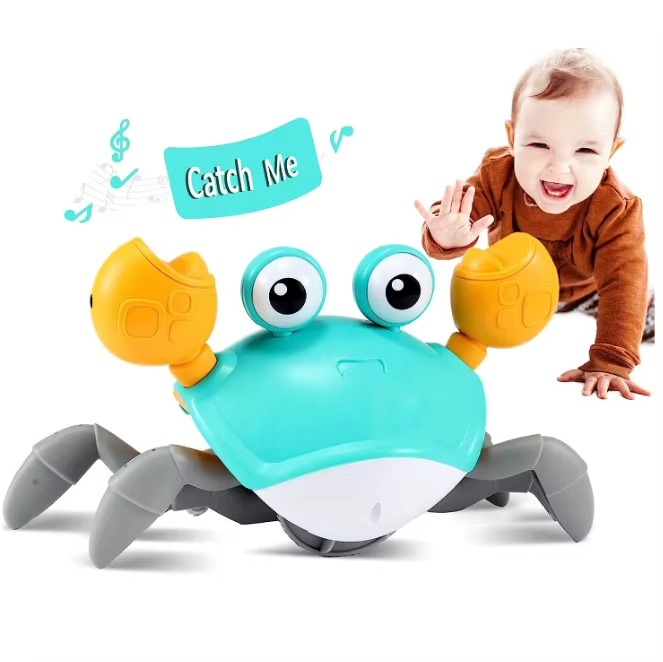 Smart Obstacle Avoidance: This crab features induction walking technology. When it detects an object in its path, it automatically changes direction, creating a fun chasing challenge that encourages babies to crawl and move!